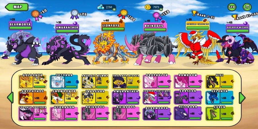 Bản Dynamons World Hack Full Rồng Apkmoday mang lại lợi thế tâm lý và sức mạnh cực lớn khi so tài cùng các đối thủ trên toàn thế giới trong những trận đấu xếp hạng căng thẳng. Việc sở hữu những quái thú hiếm cùng kỹ năng tối ưu giúp bạn dễ dàng khắc chế đối phương, nhanh chóng thăng hạng và ghi danh vào top những người chơi xuất sắc nhất.